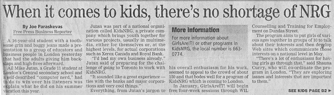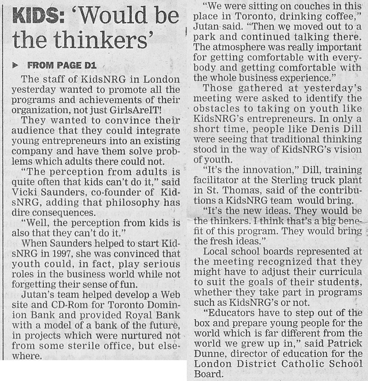 Speaking to Business Leaders and Educators about my career goals and KidsNRG (Dec 18, 1998)