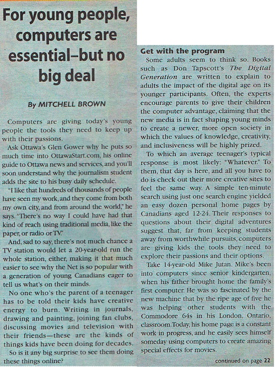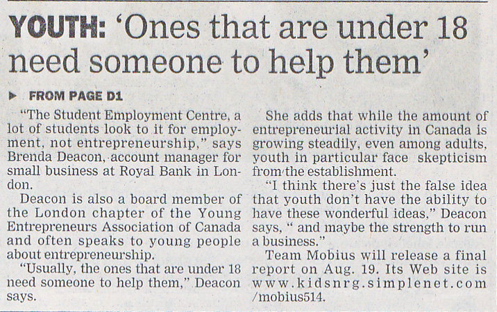 Youth Entrepreneur Centre research (Aug 3, 1999)